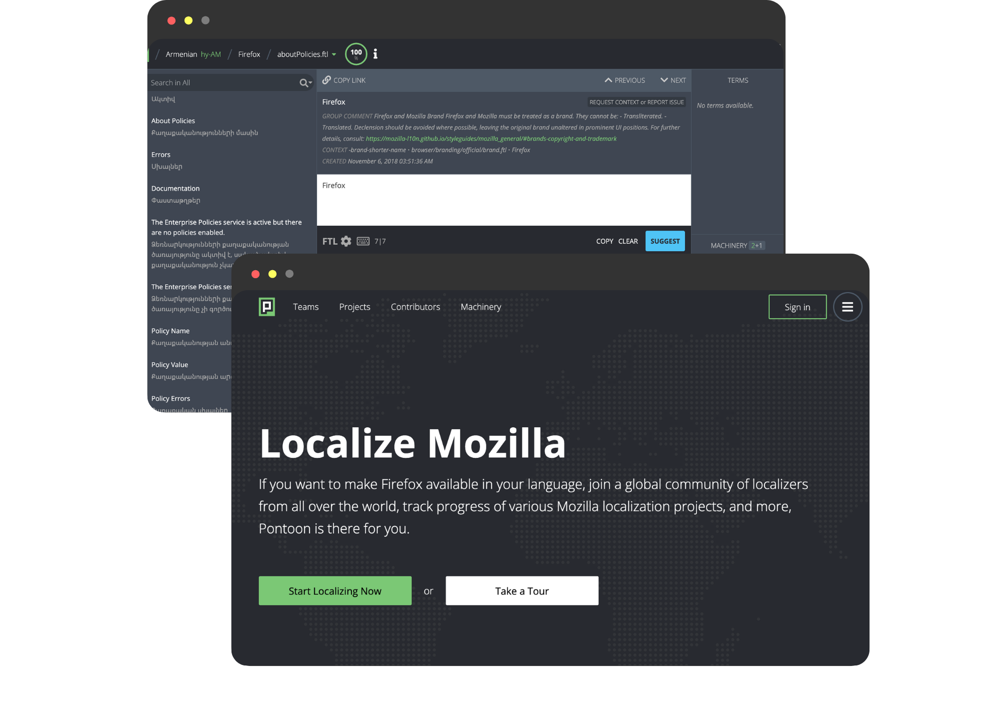 Mozilla's open-source localization software Pontoon,